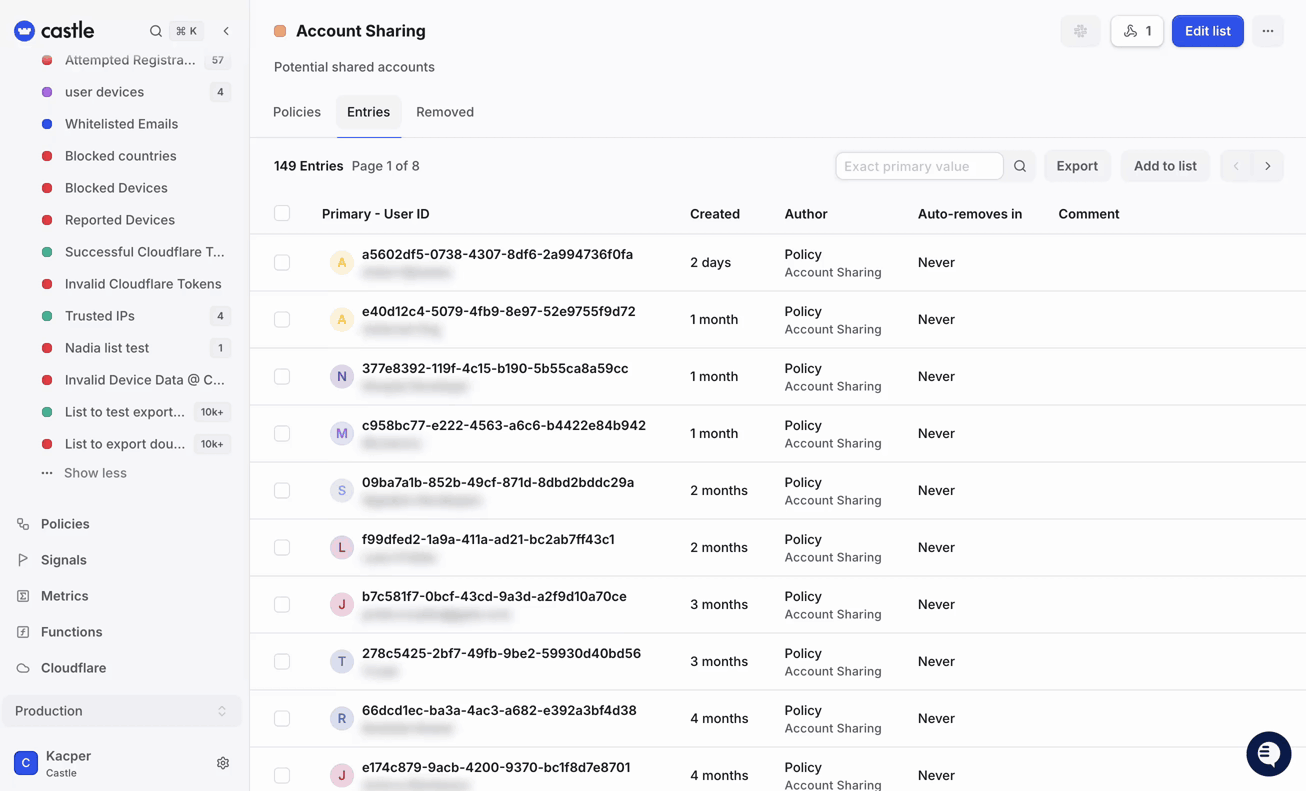 For larger lists the export runs in the background - you'll receive an email with a download link when it's ready.