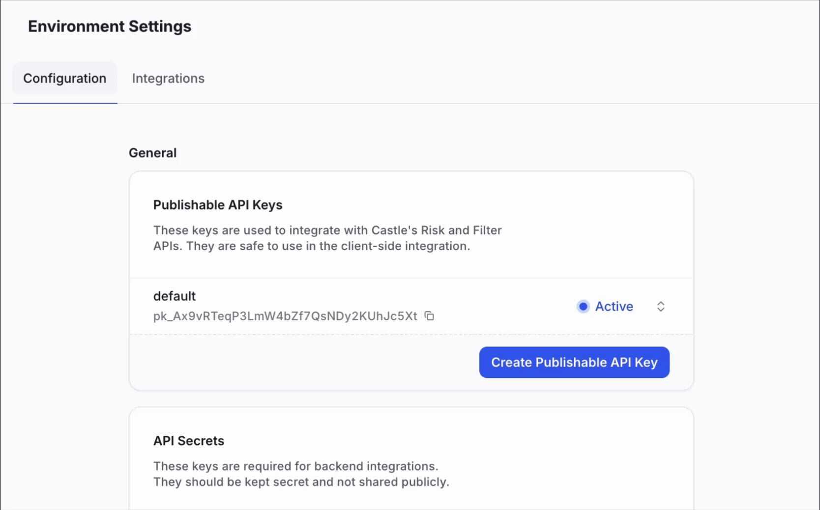 Castle now lets you create multiple Publishable API Keys and API Secrets. Unlike the previous single-key model where rotating a key broke all integrations at once, you can now maintain separate keys per integration and rotate them independently without downtime.